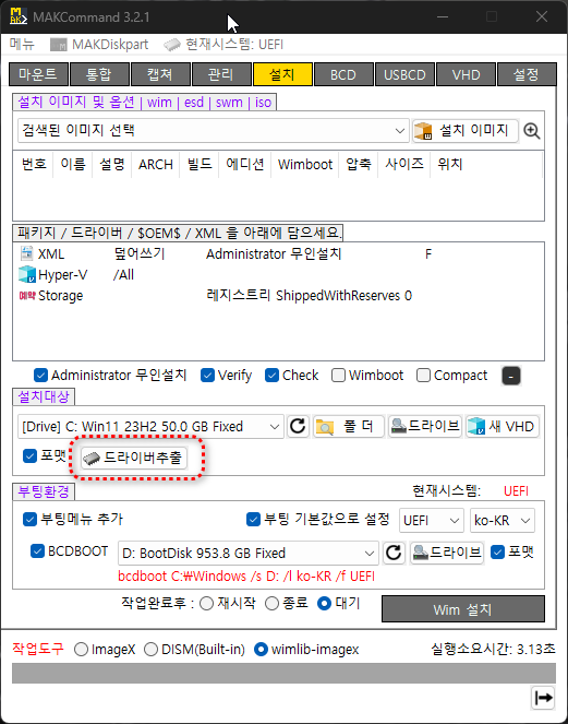 드라이브 : 기존드라이브에서 드라이버 백업할수 있도록 드라이브 선택시 드라이버 추출버튼 생성