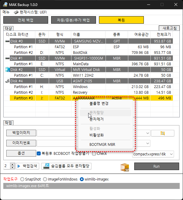 1. PE환경에서는 자동으로 모든 숨김볼륨에 문자할당을 시도합니다. 바로작업가능하도록