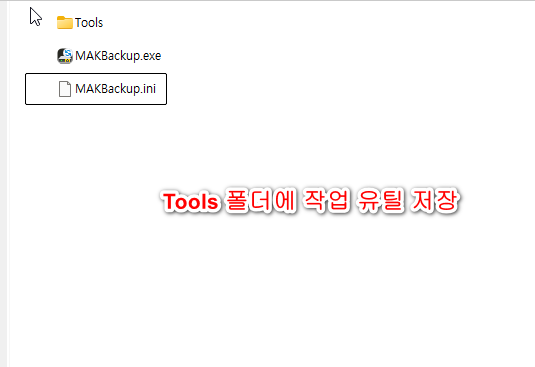 2. 마지막으로 선택한 백업도구 툴이 INI 파일에 저장됩니다.