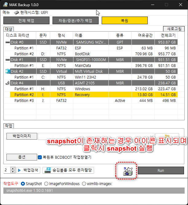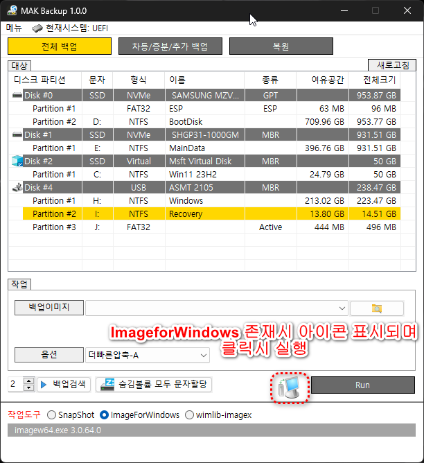 SNAPSHOT과 IMAGEFORWINDOWS 는 상용툴이기때문에 개인이 아래와 같이 Tools 폴더에 넣어야 하며
