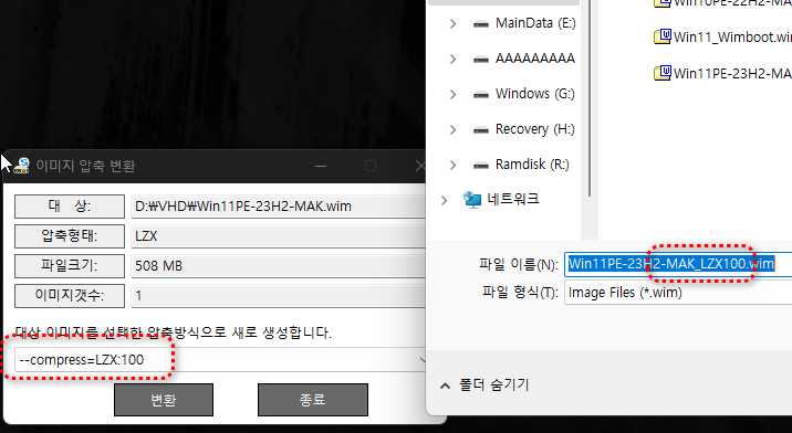 -wim파일 변환시 지정한 압축옵션으로 기본 저장 파일명