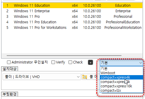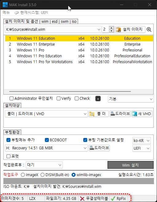 -하단에 wim 이미지 헤더 정보 표시