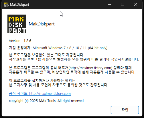| MAK Diskpart 1.8.0 (4) | 2025.07.13 |
