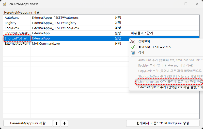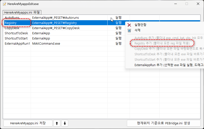 단, HereAreMyappsEdit.exe 로 편집을 하려면 HereAreMyapps.ini 만 인식하니 편집후 파일명 변경하고