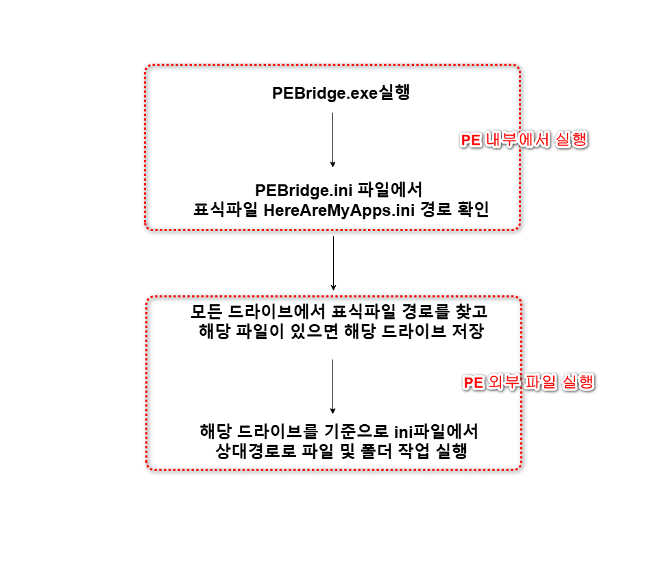| PEBridge.exe | PE내부에 저장, PE시작시 실행되도록 설정 |