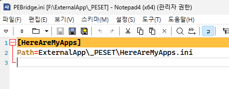 PEBridge.ini 에 저장되는 Path 경로의 HereAreMyapps.ini 파일명은 변경해서 사용해도 됩니다.