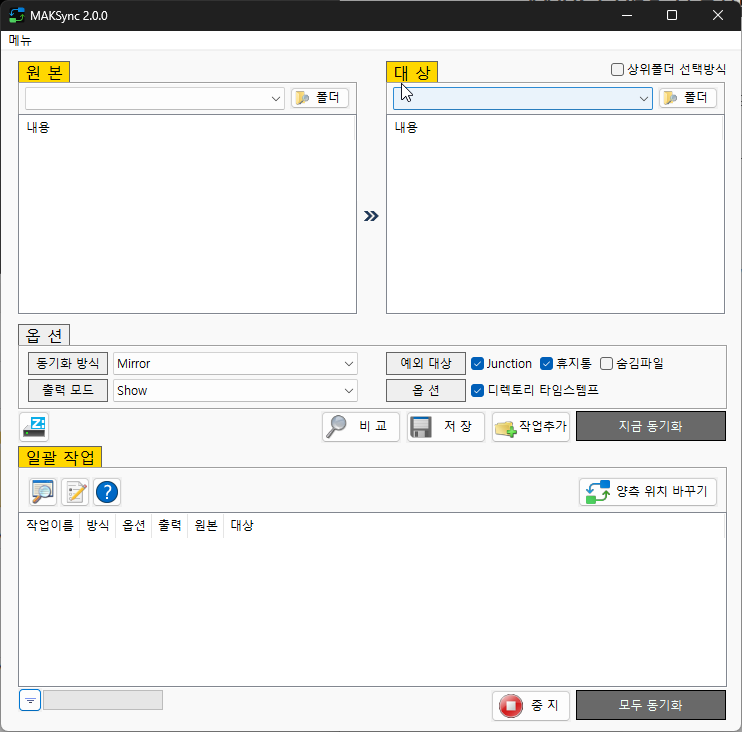 -Mirror : 원본 폴더와 대상 폴더를 동일하게 만듭니다.