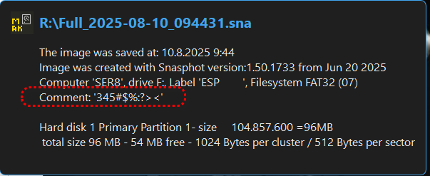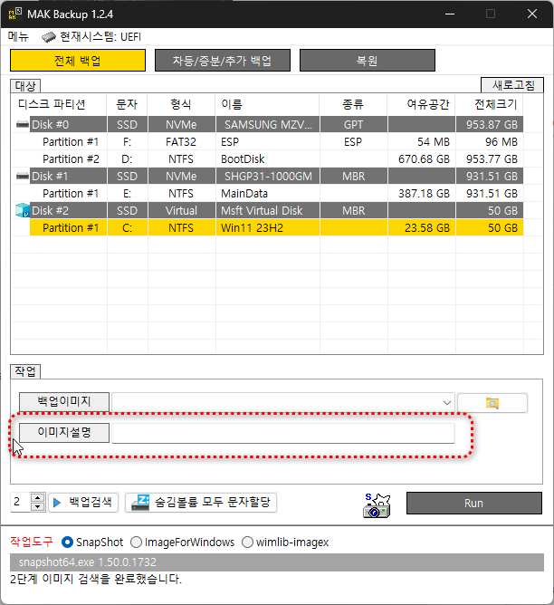 -Snapshot과 ImageFW 백업시 이미지설명 기능 추가