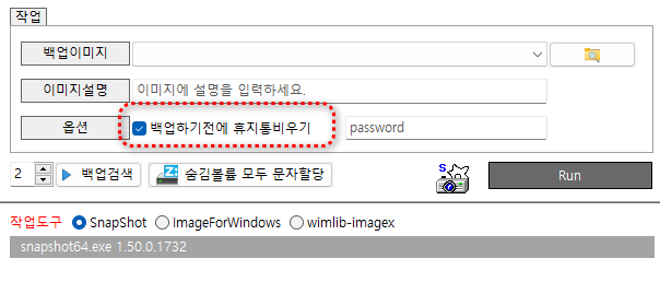-백업전 백업대상 드라이브 휴지통 비우기 (이전버전에서는 기본 옵션이었으나 선택가능하도록)