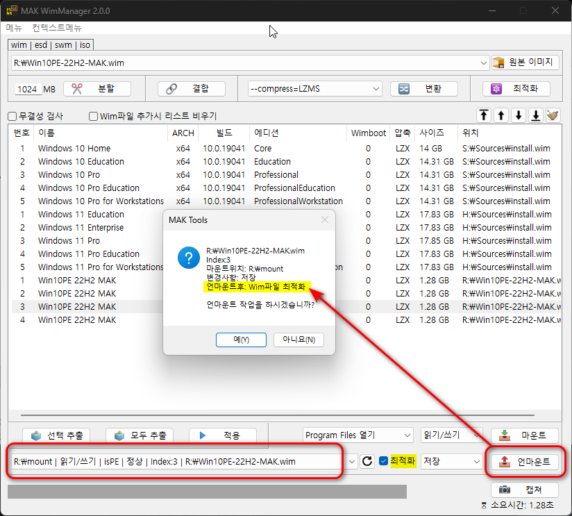 여러 Wim파일을 마운트하여 동일 작업을 할 경우 매우 유용합니다.
