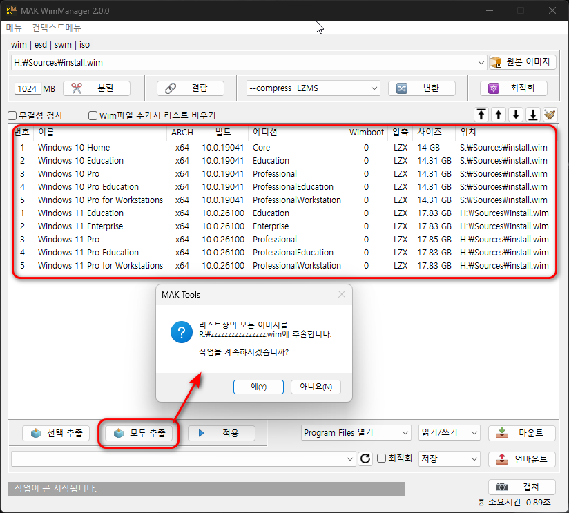 여러 Wim파일에서 한번에 이미지들을 추출할 경우 매우 유용합니다.