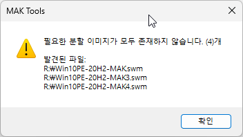 결합시 해당 Wim파일 총갯수와 발견된 swm 파일 표시